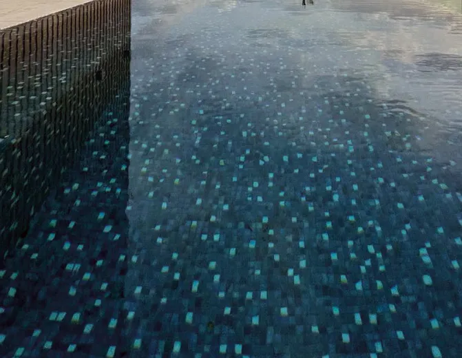 Hal paling menonjol dari mozaik Luminiscent tentu saja kemampuannya untuk bercahaya saat malam hari. Bayangkan ketika lampu kolam dimatikan, mozaik tetap memberikan cahaya lembut yang menciptakan suasana magis. Efek ini sering disebut juga sebagai mozaik glow in the dark, yang membuat kolam terlihat menawan tanpa tambahan listrik berlebih.