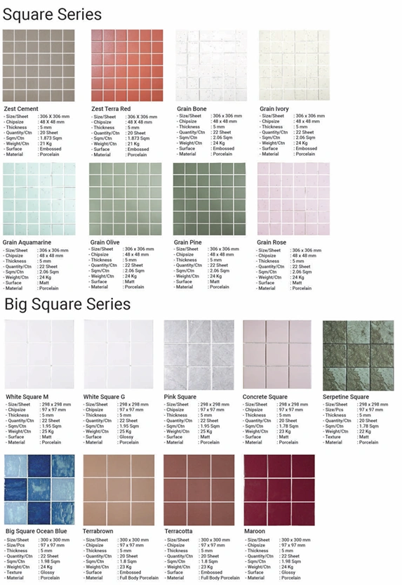Kedua varian tersebut tidak hanya indah secara visual, tetapi juga dibuat dari porselen padat yang kuat, anti licin, dan mudah dibersihkan. Dengan memilih varian ini, kolam renang Anda tidak hanya cantik, tetapi juga aman dan tahan lama.
