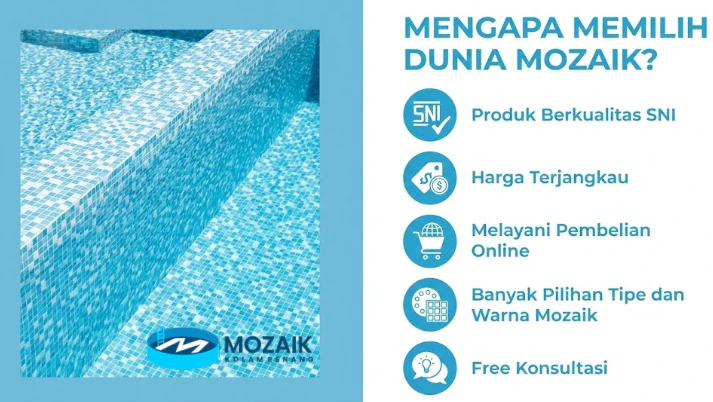 Banyak kontraktor profesional lebih memilih mozaik ber-SNI karena ingin memastikan hasil pekerjaan mereka tetap bagus untuk waktu yang lama. Jika Anda ingin kolam renang yang tampil bersih dan tahan lama, mozaik SNI menjadi pilihan yang tepat.