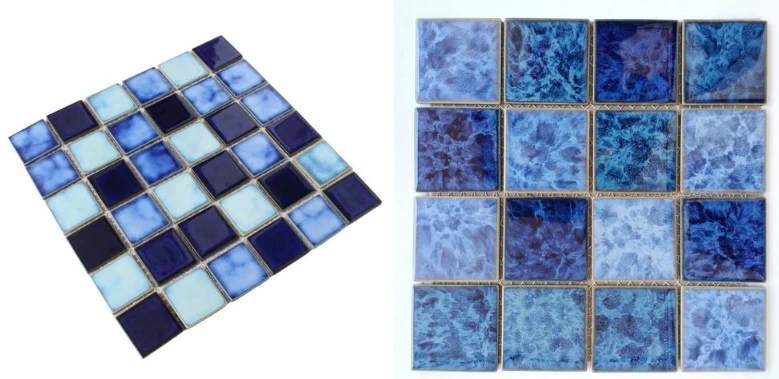 Mozaik ini memiliki warna biru tua yang memberi tampilan kolam lebih dalam. Hasil akhir glossy pada tipe MB membuat warnanya tampak mengkilap ketika terkena cahaya. Jika Anda ingin kolam yang terlihat elegan dengan warna konsisten, tipe ini bisa menjadi pilihan yang aman.
